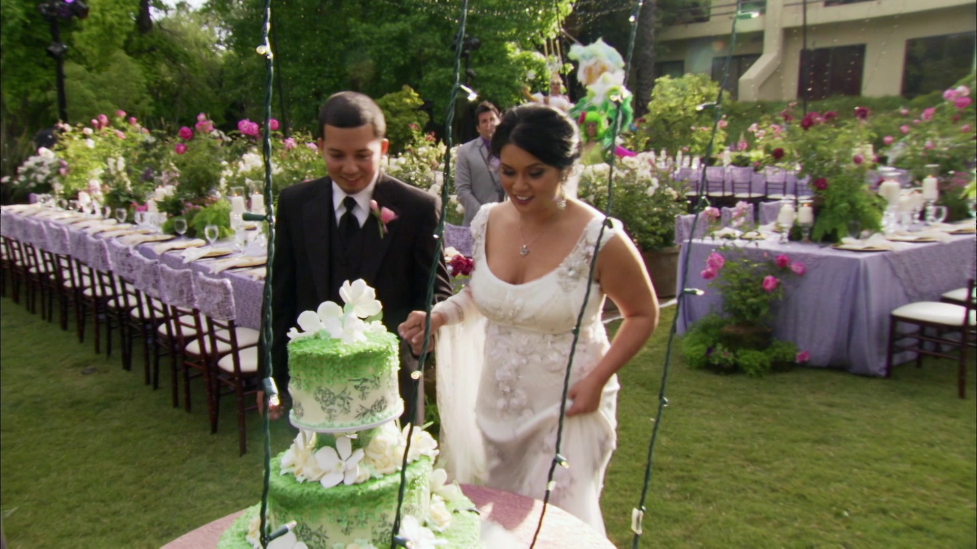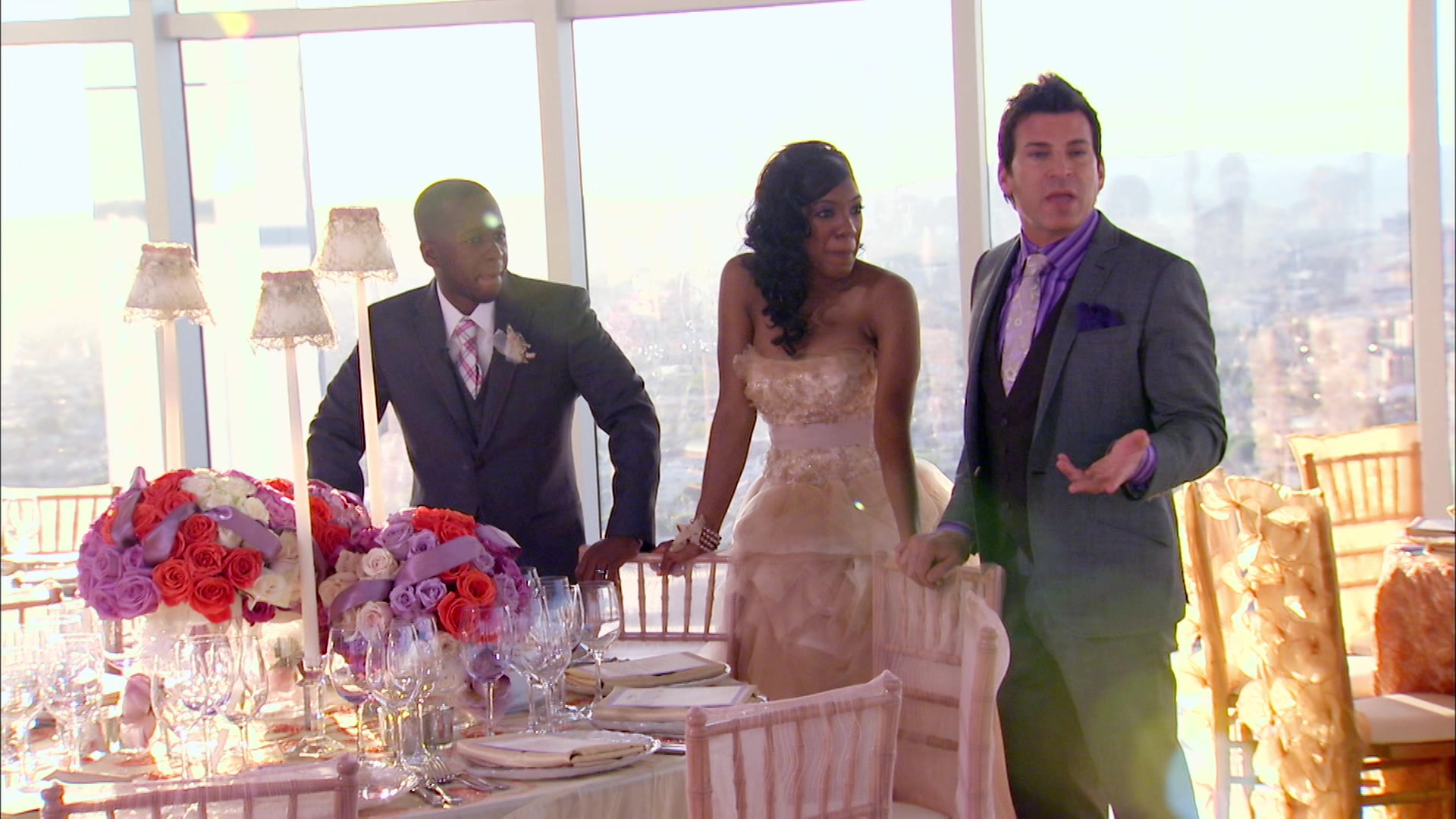 Bride Benita is an actress that wants a Hollywood Glam wedding, but she's procrastinated on all the details. Wedding planner David Tutera takes his bride and groom back in time with fashions from the forties, fifties, and sixties.
