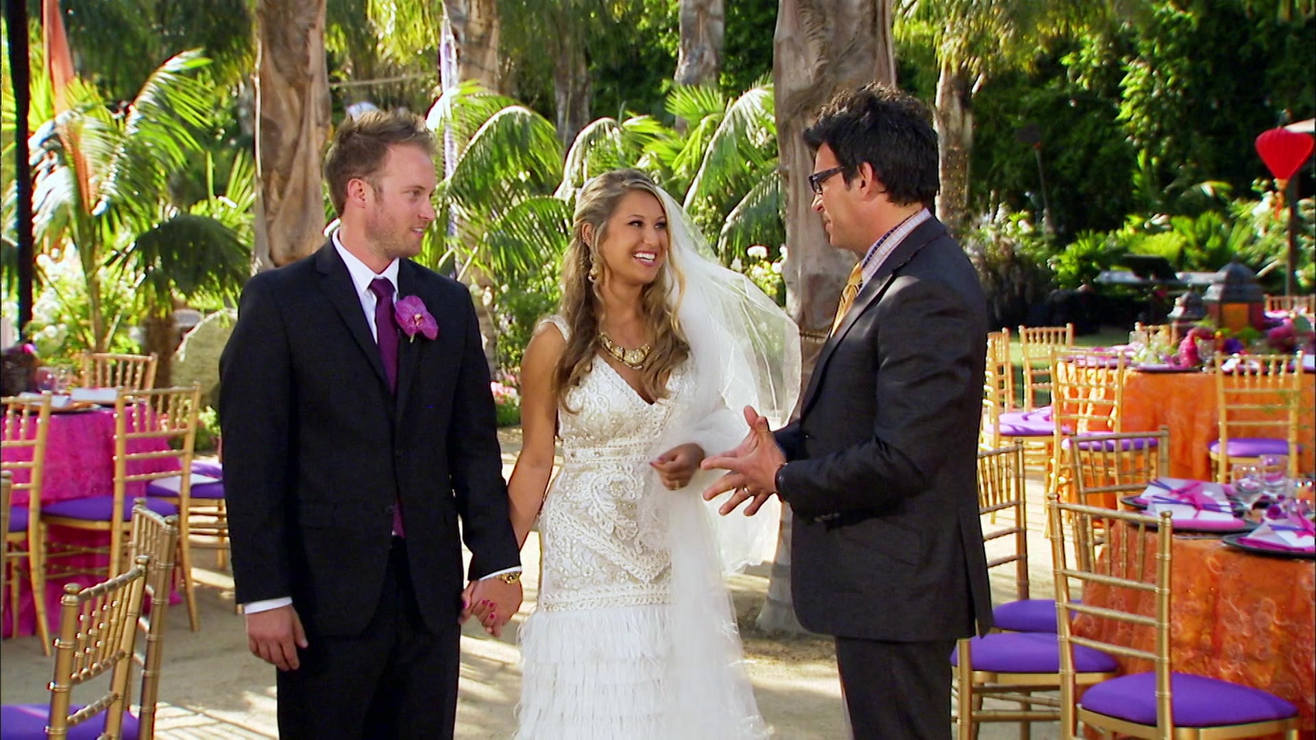 High school sweethearts Lauren and Justin want to combine Chinese and Indian traditions at their wedding. But they recently lost their beachfront venue, and anxiety is ruining everything. They need David Tutera, and fast!