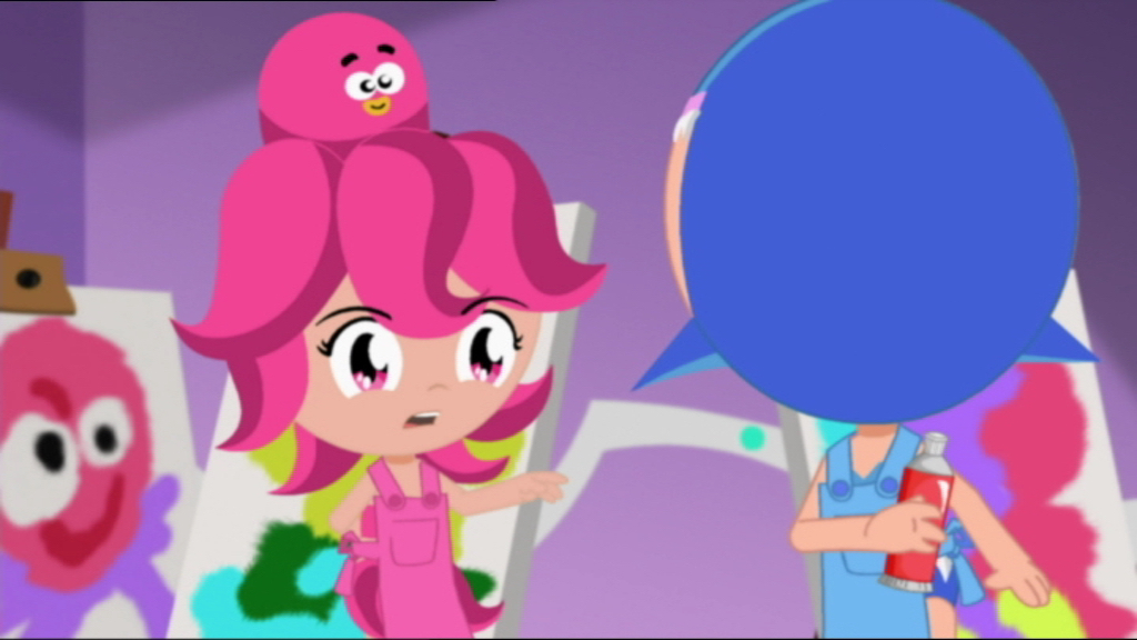 The three friends are discussing how they will be friends forever when their pets, playing a ballgame outside Shark Palace, smash a window.