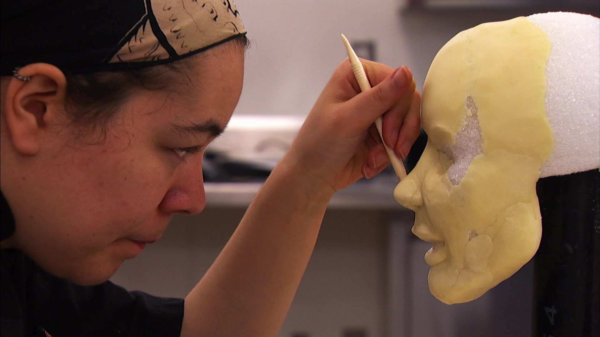 Buddy pumps up the flavors on a life-sized cake for a female bodybuilder.