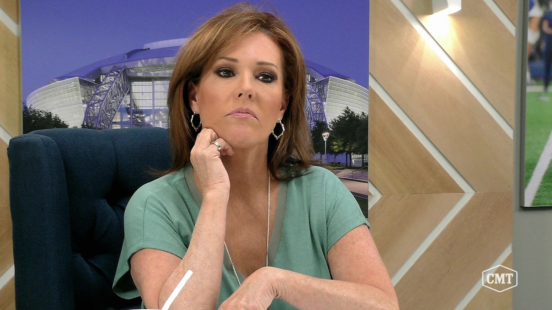 The recruits do media training with NBC 5 Dallas-Fort Worth lead news anchors Meredith Land, Kelli, and Judy name two triangle points, and guest judge Melissa Rycroft sits in.