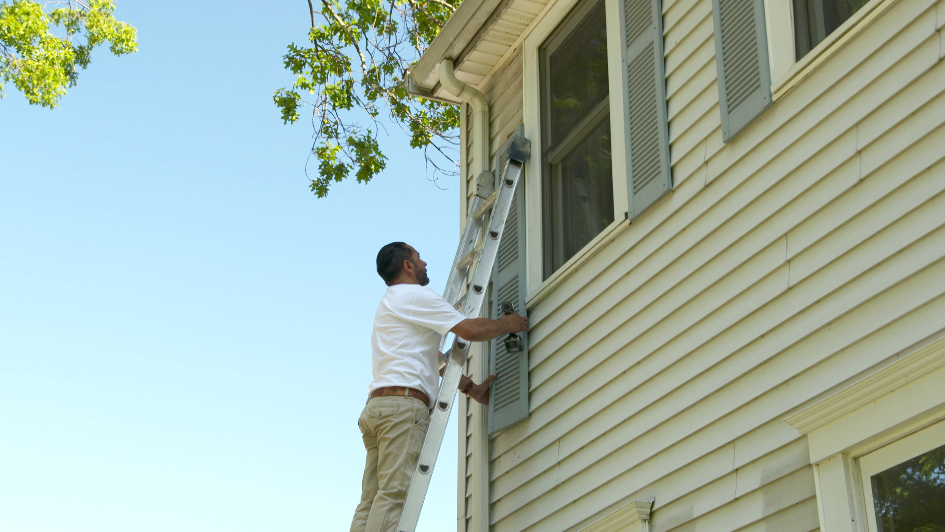 Tom installs a cable railing; Nathan upgrades a door; Mauro paints vinyl shutters.