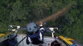 Un motociclista se desliza por un acantilado rocoso y yace atrapado en un barranco.