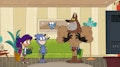 When someone keeps bedazzling his locker, Chuck chooses to get help from his comic book hero: the Dark Dingo. // When U.D. accidentally flushes Misha’s pet goldfish down the toilet, the gang goes into the sewer after her.