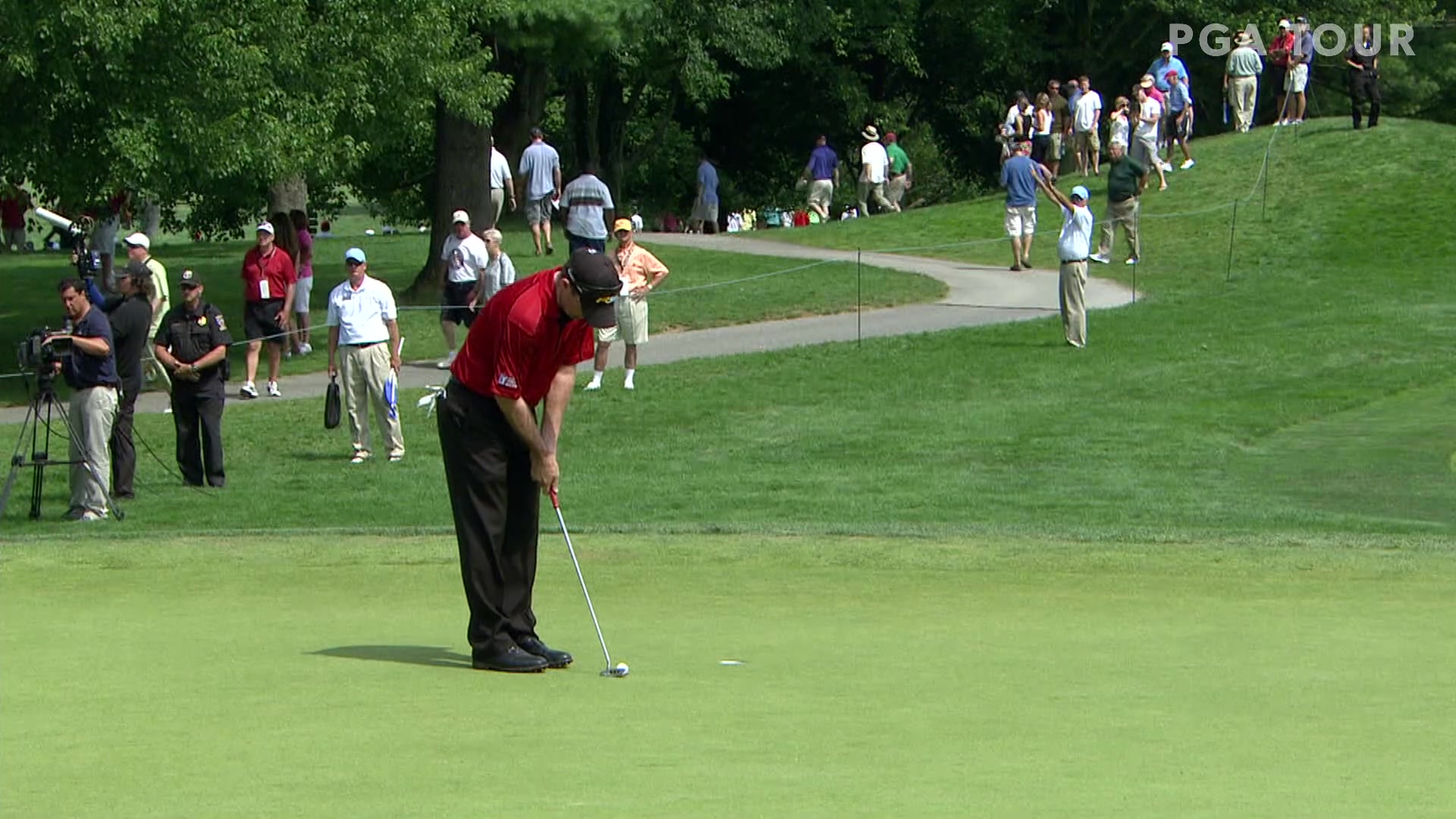 A two-putt from 60 feet on the final hole gave Tiger Woods a one-stroke victory over Phil Mickelson at the 1999 World Golf Championships – NEC Invitational at Firestone Country Club in Akron, Ohio.