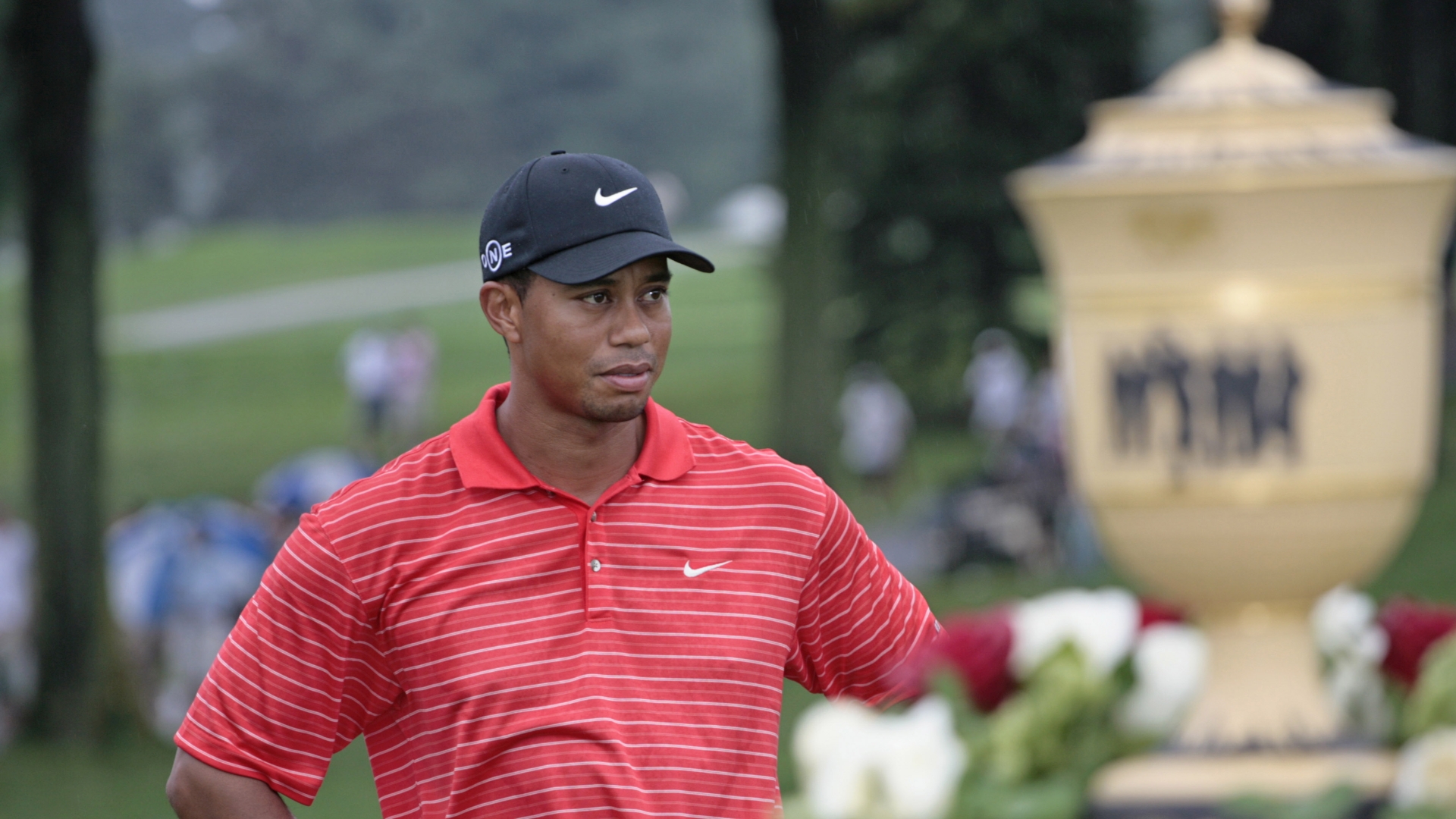 Tiger Woods wins for the fifth time in his career at Firestone when he defeated Stewart Cink in a playoff.