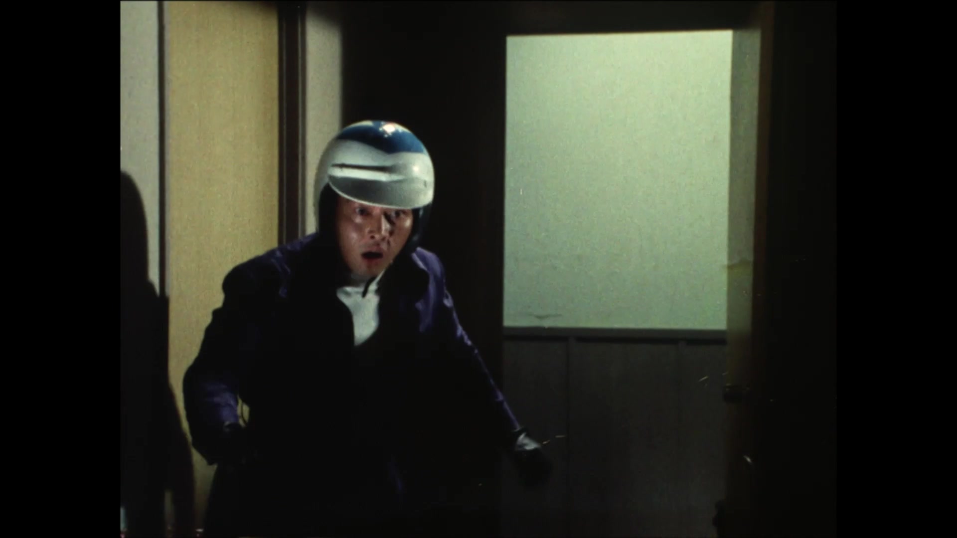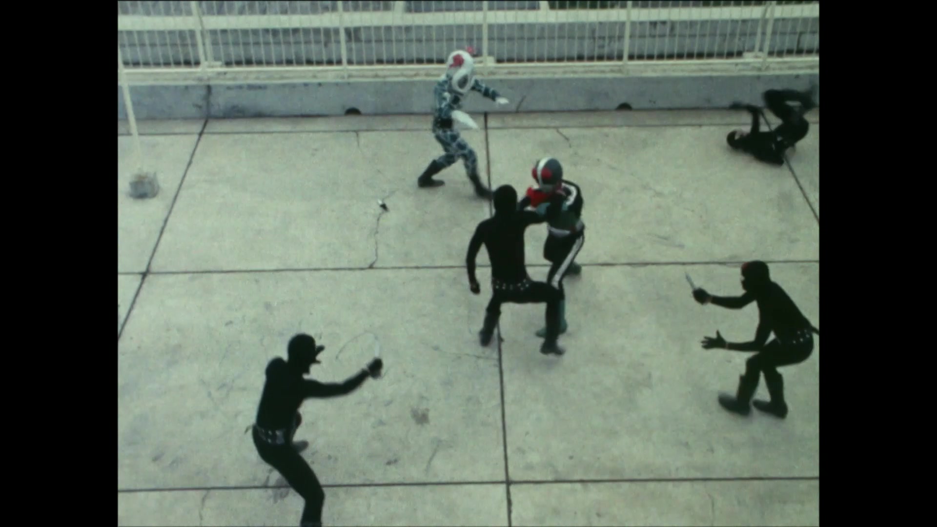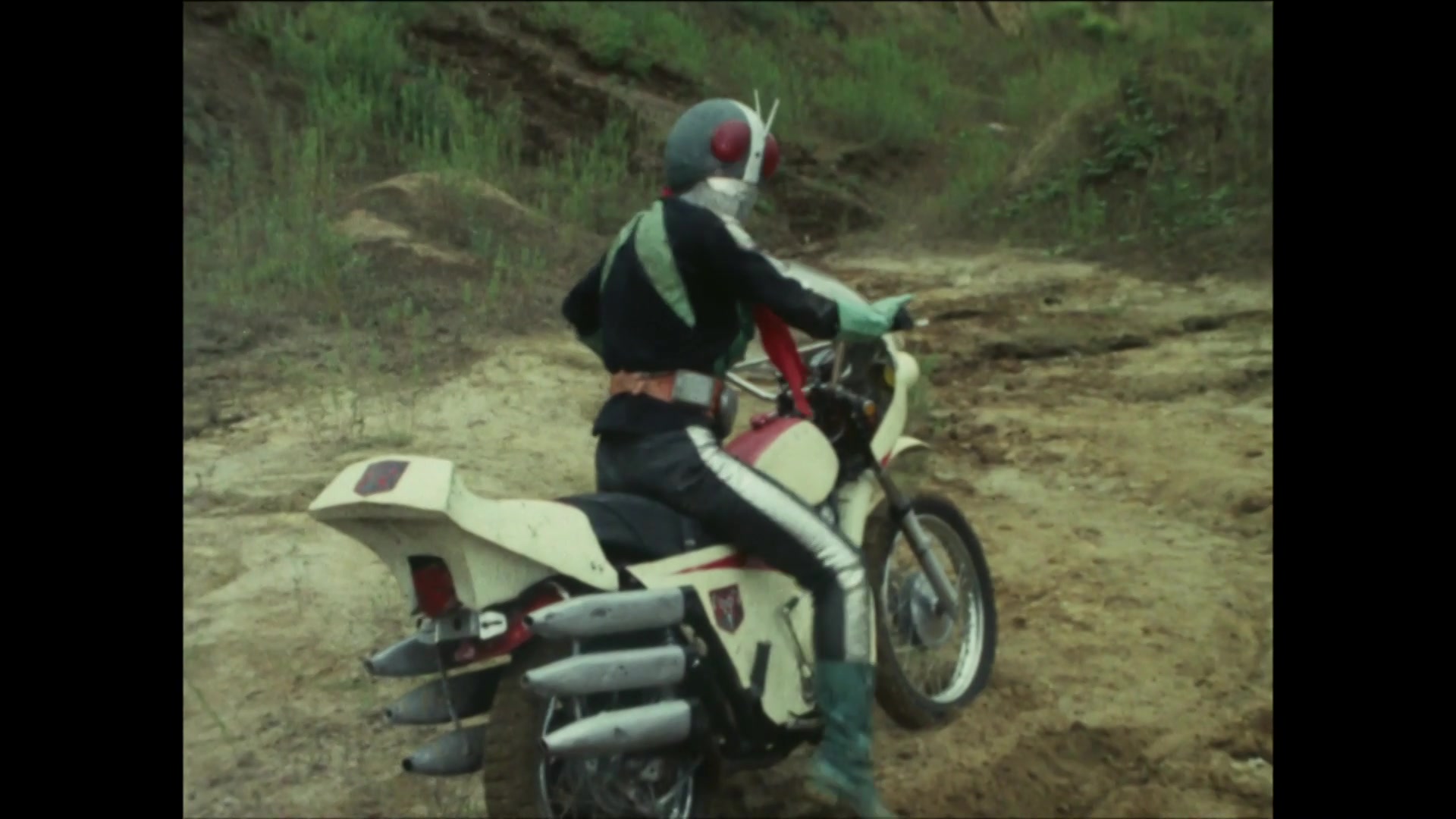 Masked Rider, having fallen into a pit trap, loses his power in the secret room where no wind can reach and reverts back to his form as Hongo.