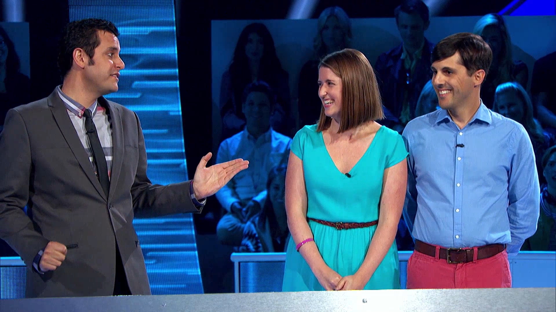 Comedian Ben Gleib hosts as a man who is good at celebrity impressions and his wife compete against a dating couple to answer increasingly difficult brain teaser puzzles.