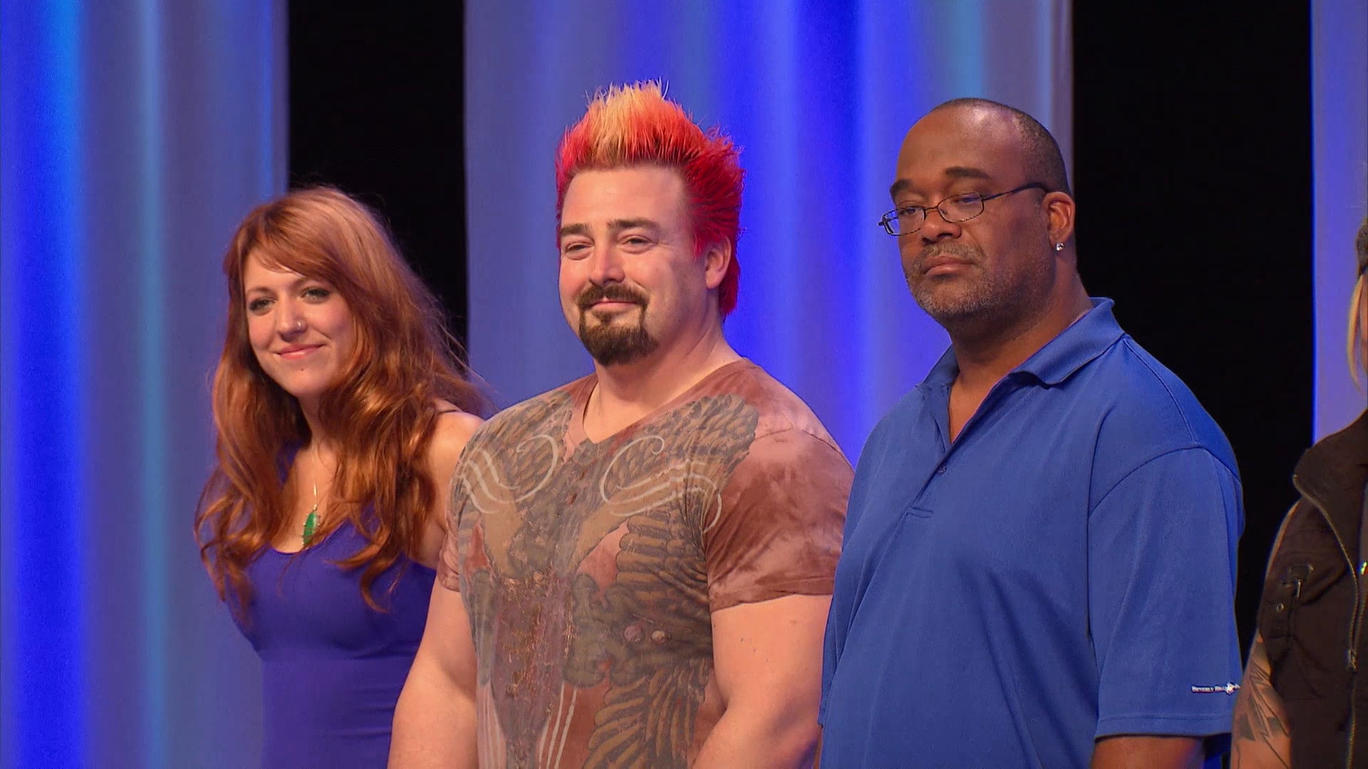 The emotion of working on teams is exacerbated by the body artists having to discuss their own teammates’ weaknesses; late in the competition, a surprise addition makes the challenge of painting their naked models even more difficult.