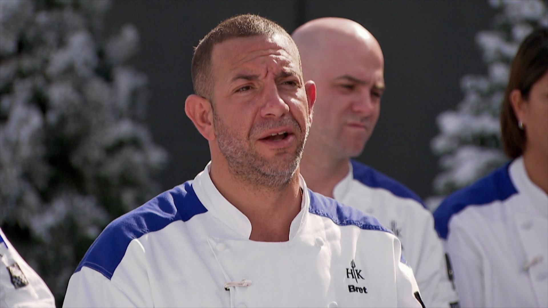 The chefs must compete in a sled race for an advantage in the winter soup challenge.