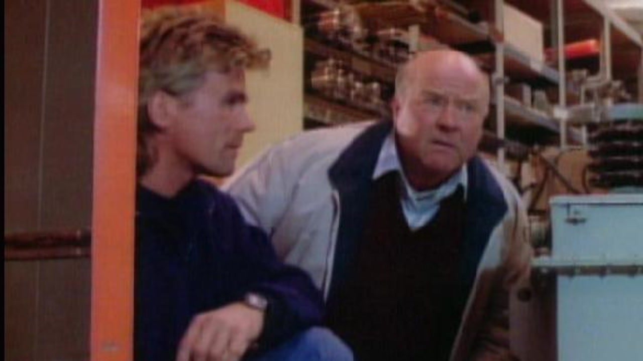 MacGyver (Richard Dean Anderson) applies his scientific knowledge to ordinary items to create a means of escape from impending doom.