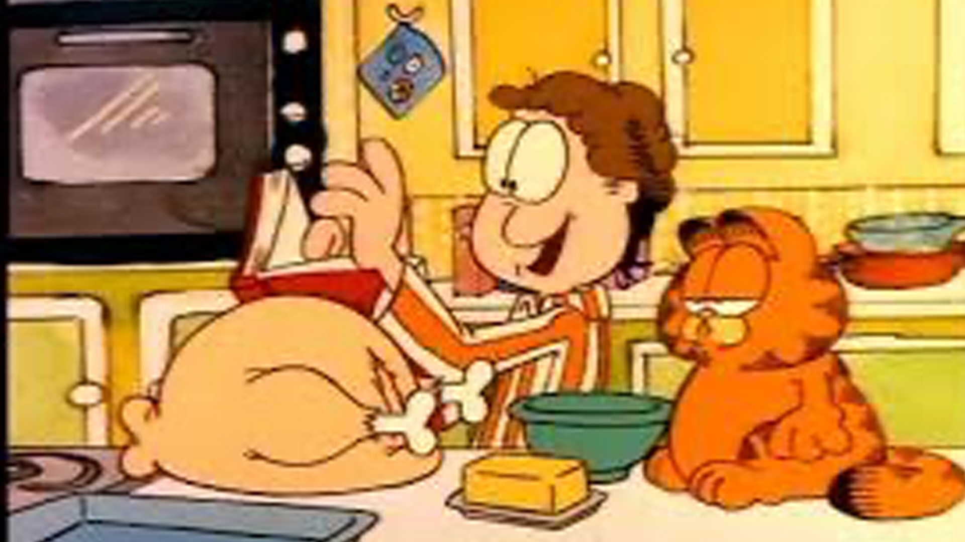 Jon falls for Garfield's veterinarian--who puts Garfield on a diet--and invites her to Thanksgiving dinner.
