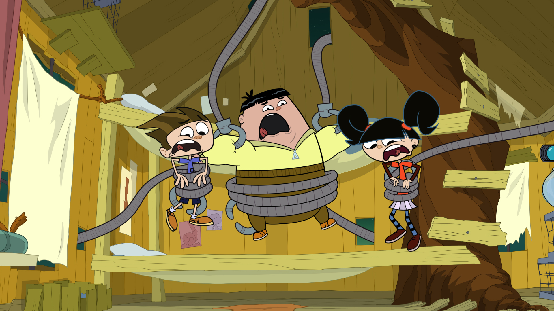 No one can find a Turkeysaurus Rex for the big Harvest dinner! The kids travel through the Lakebottom portal, looking for a Turkeysaurus-only dimension. They wind up in a parallel world populated by GIANT Turkeysauruses. Can the kids find a way back home? Santa Claus crash-lands in Lakebottom. But when keeping Santa away from the hazards of Lakebottom becomes too tricky, Sawyer uses his gadgetry to get Santa's memory back...only to make him EVIL instead. Now the kids must escape Santa's wrath.