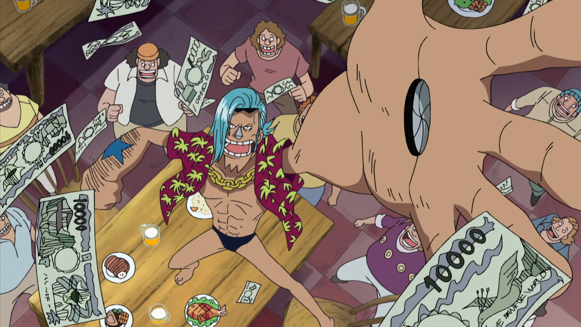 The citizens of Water Seven search for the Straw Hats and a devastating storm threatens to sink the city. Chopper and Sanji pick up Robin’s trail, but they aren’t prepared for what they’ll find.