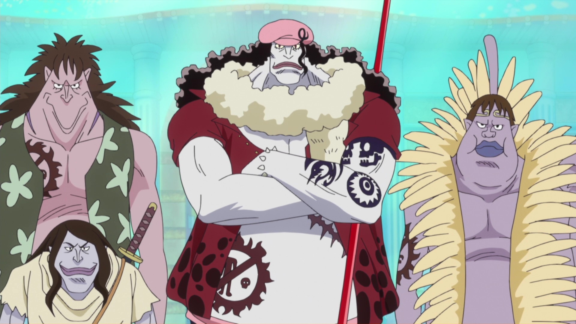 Captain Vander Decken and Hordy Jones manage to successfully breach the defenses of Ryugu Palace. Meanwhile, Jimbei waits patiently for Luffy to arrive at the Sea Forest.