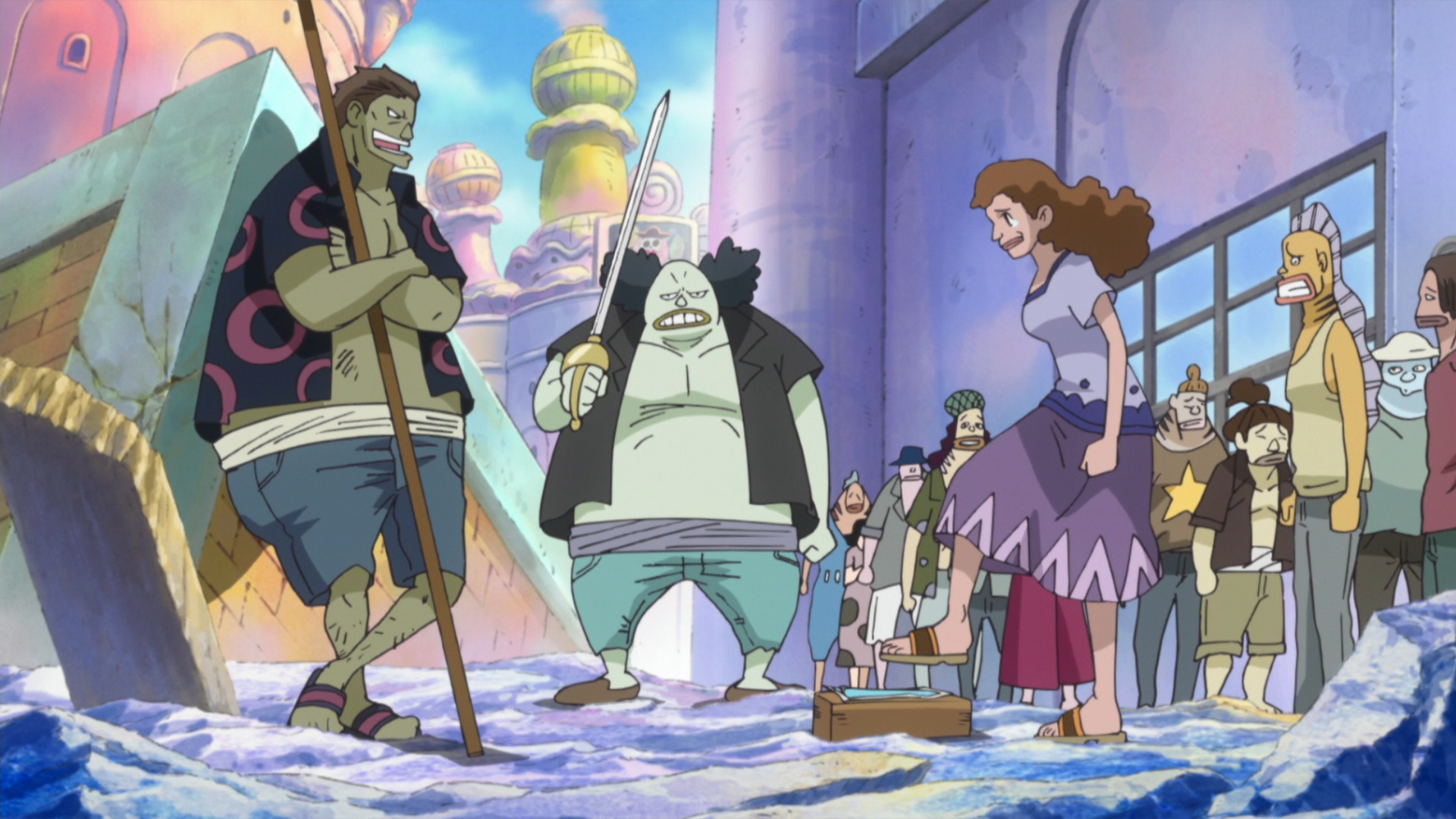 Zoro and Neptune fight bravely, but they're no match for Hordy and his pill-popping minions. Back at the ship, Luffy reunites with Jimbei, who reveals something sinister about his past.