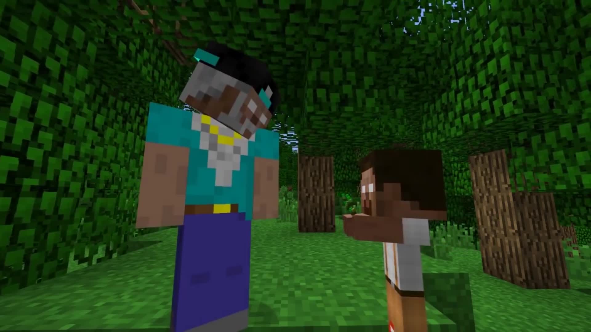In this episode, we find out that Herobrine has a grandfather! His parents leave him at his grandfather’s place. Herobrine decides to go to the city with his grandpa, where they meet kid Notch.