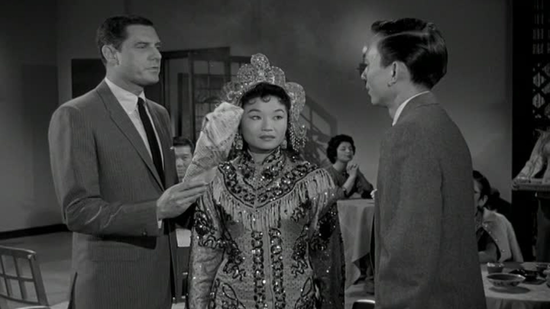 A man stabs a Chinese shop owner to death with a dagger, while Triad muscle goes after a gorgeous dancer's fan, given to her for good luck. The dancer's fiancé hires Peter Gunn to change her luck.