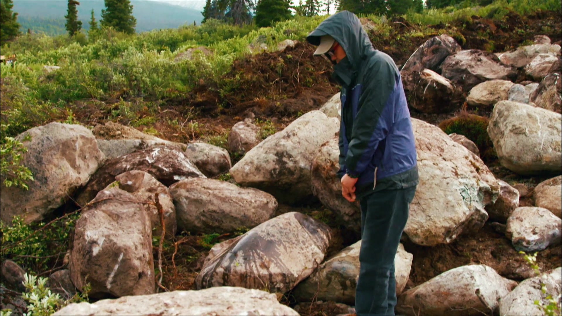 After finally uncovering some promising boulders at the Wolverine mine, the crew discovers they may have breached their claim lines.