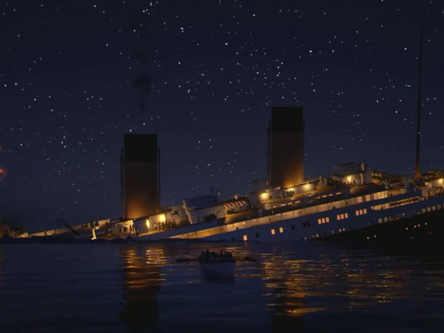 On the night of April 14, 1912, the RMS Titanic, on her maiden voyage from Southampton to New York, collides with an iceberg in the middle of the North Atlantic and sinks within a few hours, drowning 1,500 of its 2,200 passengers.