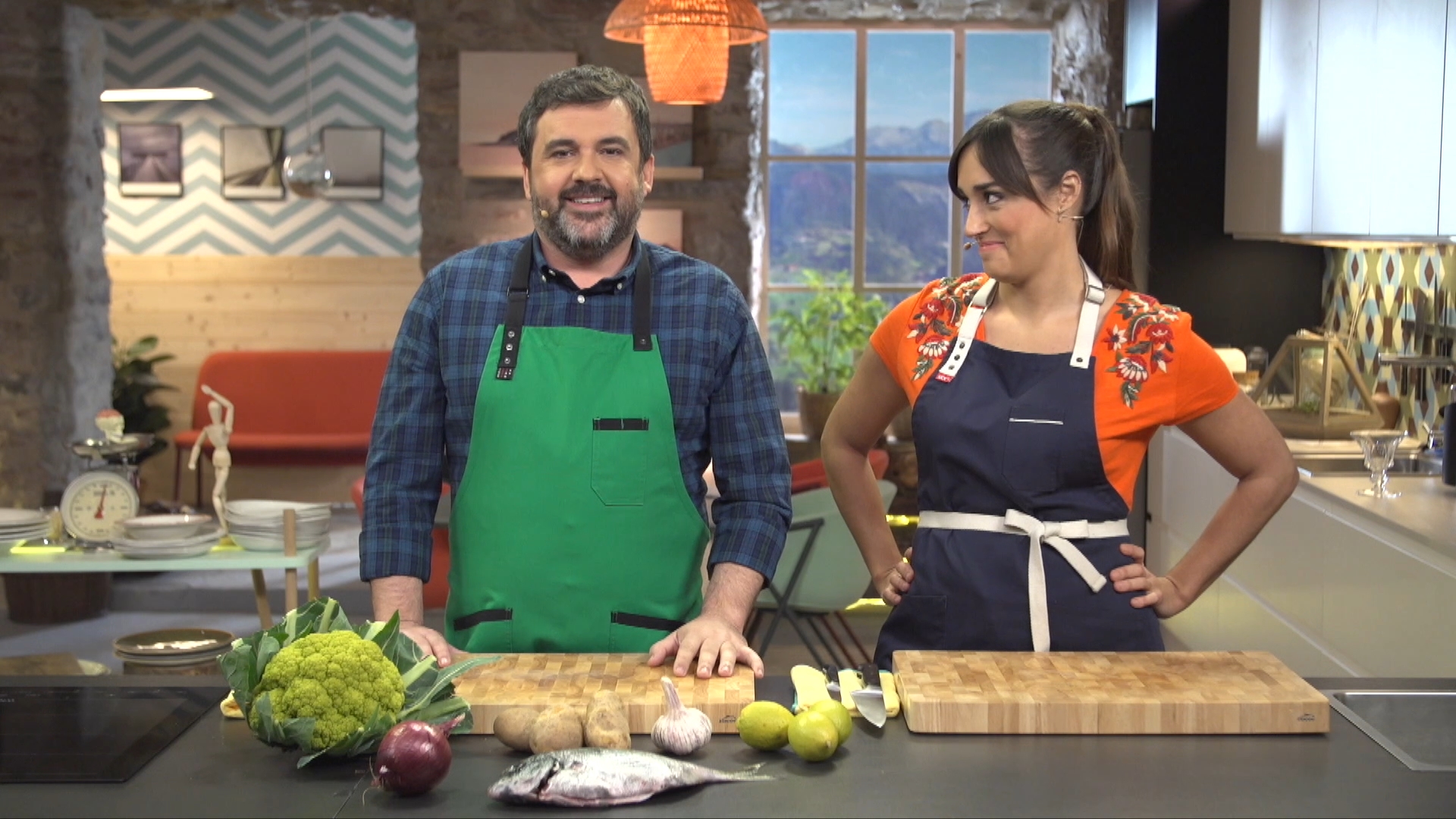 El cocinero Ander González elabora una receta mientras la nutricionista Gabriela Uriarte explica las propiedades de los ingredientes utilizados y analiza el equilibrio dietético de las recetas.