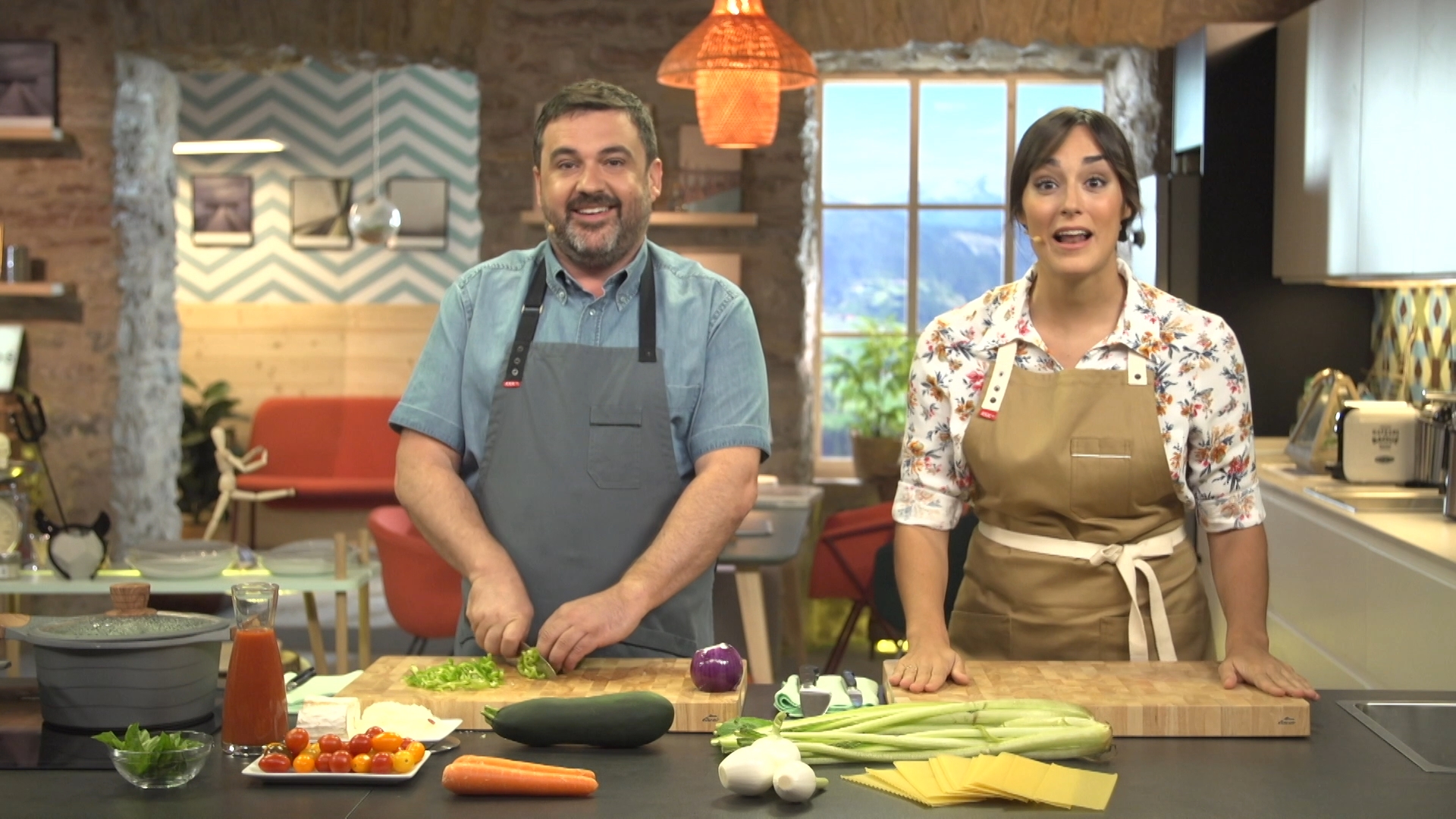 El cocinero Ander González elabora una receta mientras la nutricionista Gabriela Uriarte explica las propiedades de los ingredientes utilizados y analiza el equilibrio dietético de las recetas.