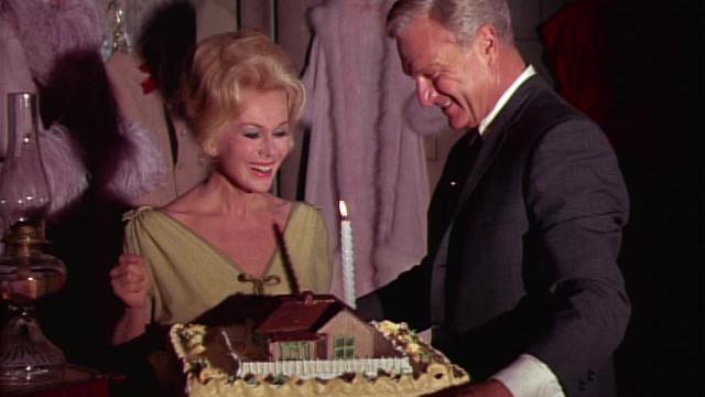 It's the Douglases' wedding anniversary and, after initially pretending not to remember, Oliver (Eddie Albert) makes clear that he knows the date very well…he just can't remember exactly how many years he and Lisa (Eva Gabor) have been married.