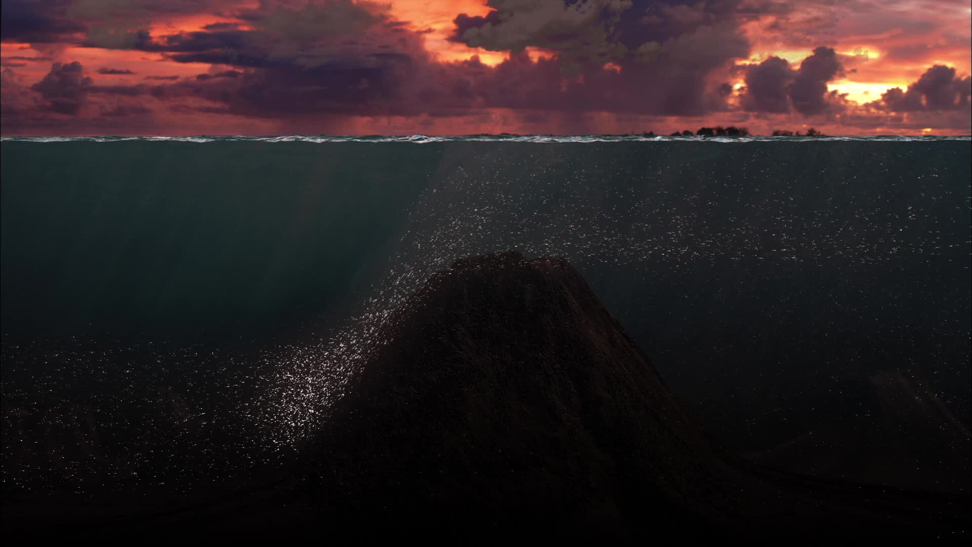 In the vast emptiness of the Pacific Ocean, tectonic movements construct or destroy islands.