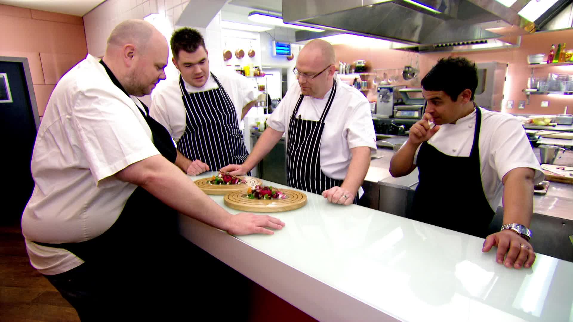 It's the battle of the South West chefs – returning contenders, Paul Ainsworth and Nathan Outlaw plus newcomer Simon Hulstone. They kick things off with their starters, but which one is going to be first off the blocks?