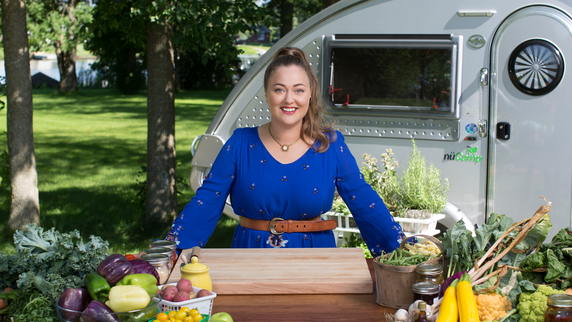 Host Amanda Herrera prepares a frittata, rosemary skewer chicken and grilled bread salad with fresh ingredients from a local farmers' market.