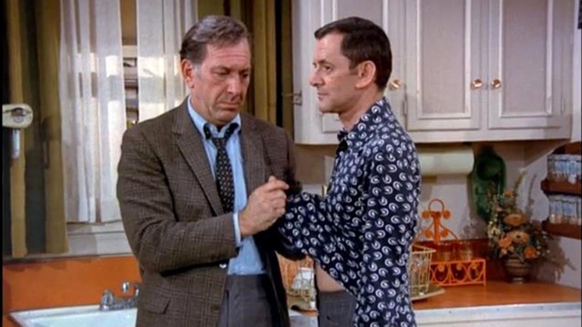Based on Neil Simon's hit Broadway play, The Odd Couple matches prim, compulsively neat Felix (Tony Randall) and gruff, sloppy Oscar (Jack Klugman), as divorced men comically struggling to live together in the same New York City apartment.