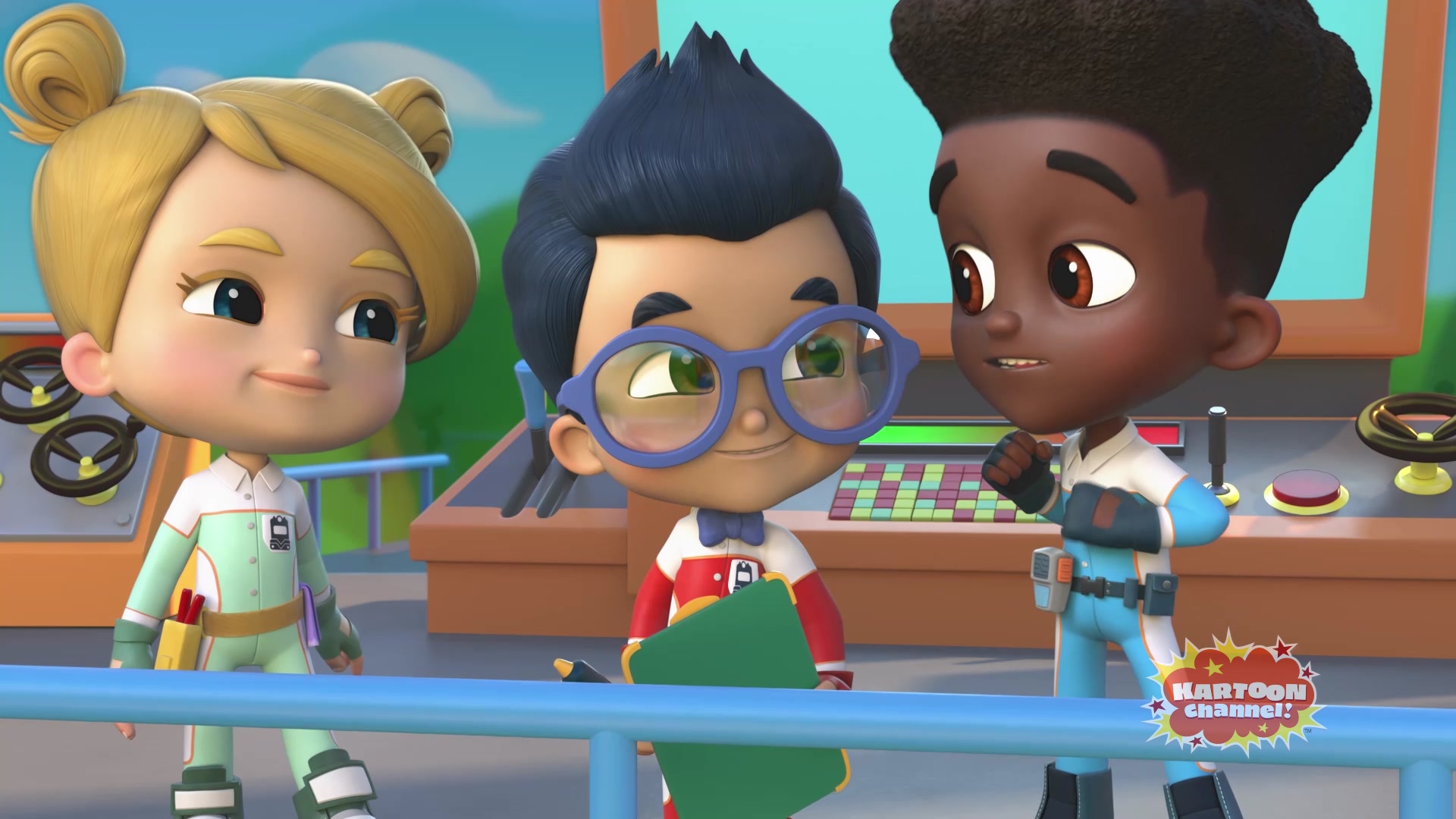 Clickety Clack, let's make tracks and get to know all our friends in Tracksville! There's never a dull moment with Nate, Brock, Faye, Penny, Red, Flicker & Mandy; especially when they're taking a break from their Mega Missions.