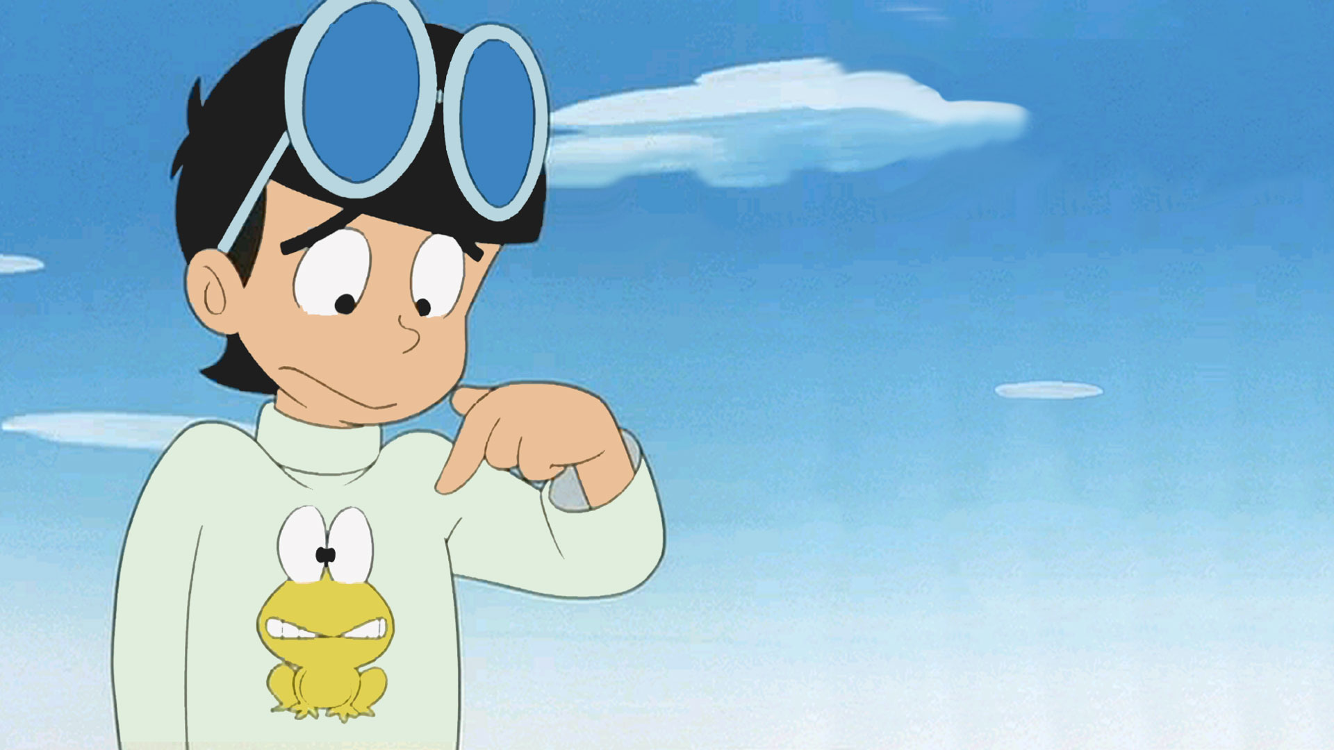 Una tortuga muerde a Pyonkichi en la barriga, ¡y termina con un ombligo! / La televisión en blanco y negro en casa de Hiroshi se echa a perder. ¡Pero Ponkotsu-Taro dice que puede darles una televisión a color!
