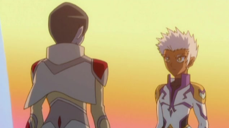 Disfrazados como soldados Gundalianos, Marucho y Akwimos se infiltran en una concentración y se sorprenden de que sea comandada por Jake.