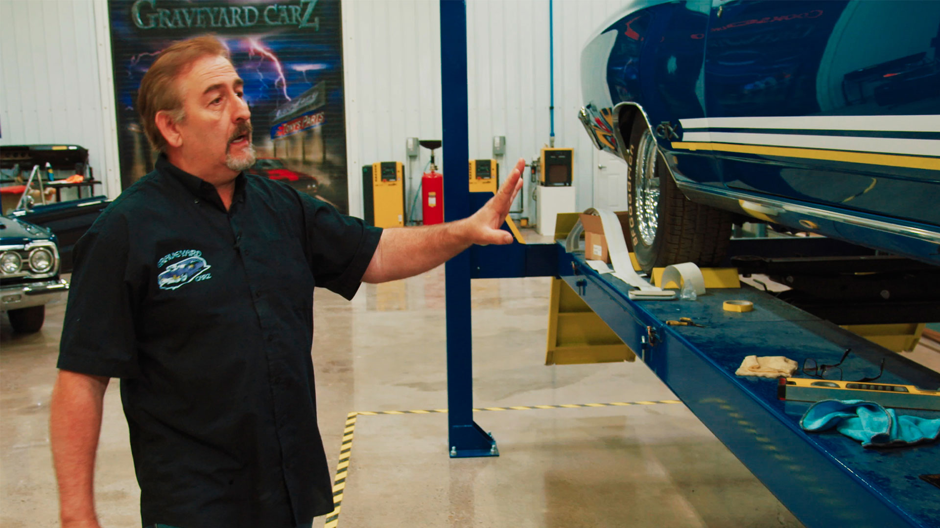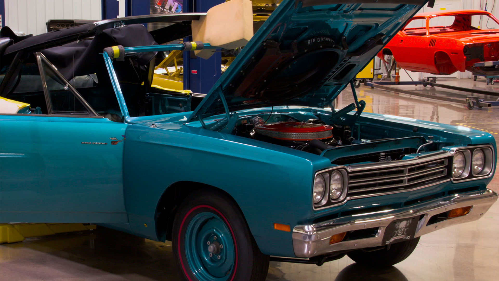 The Ghouls install the HEMI in the sea foam turquoise RoadRunner. The dash is installed in Torino's GTX and Stan Lynch comes calling.