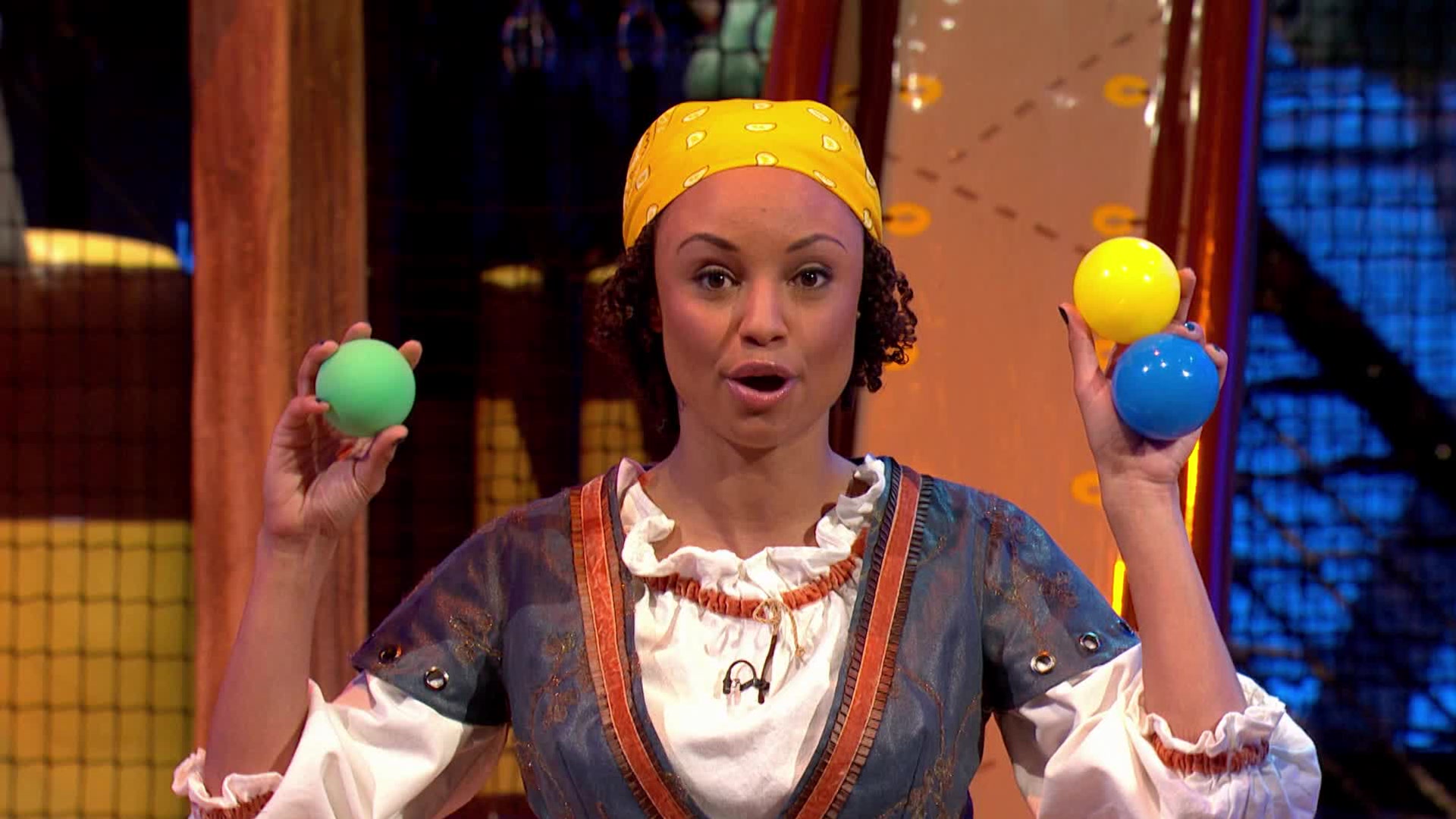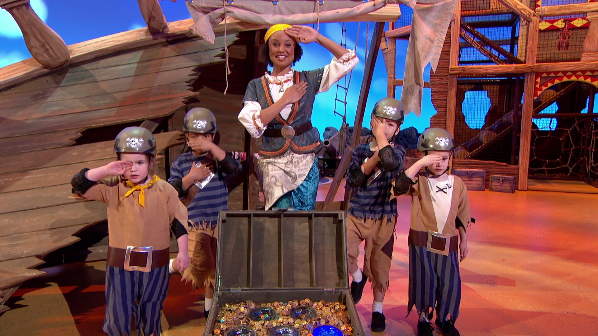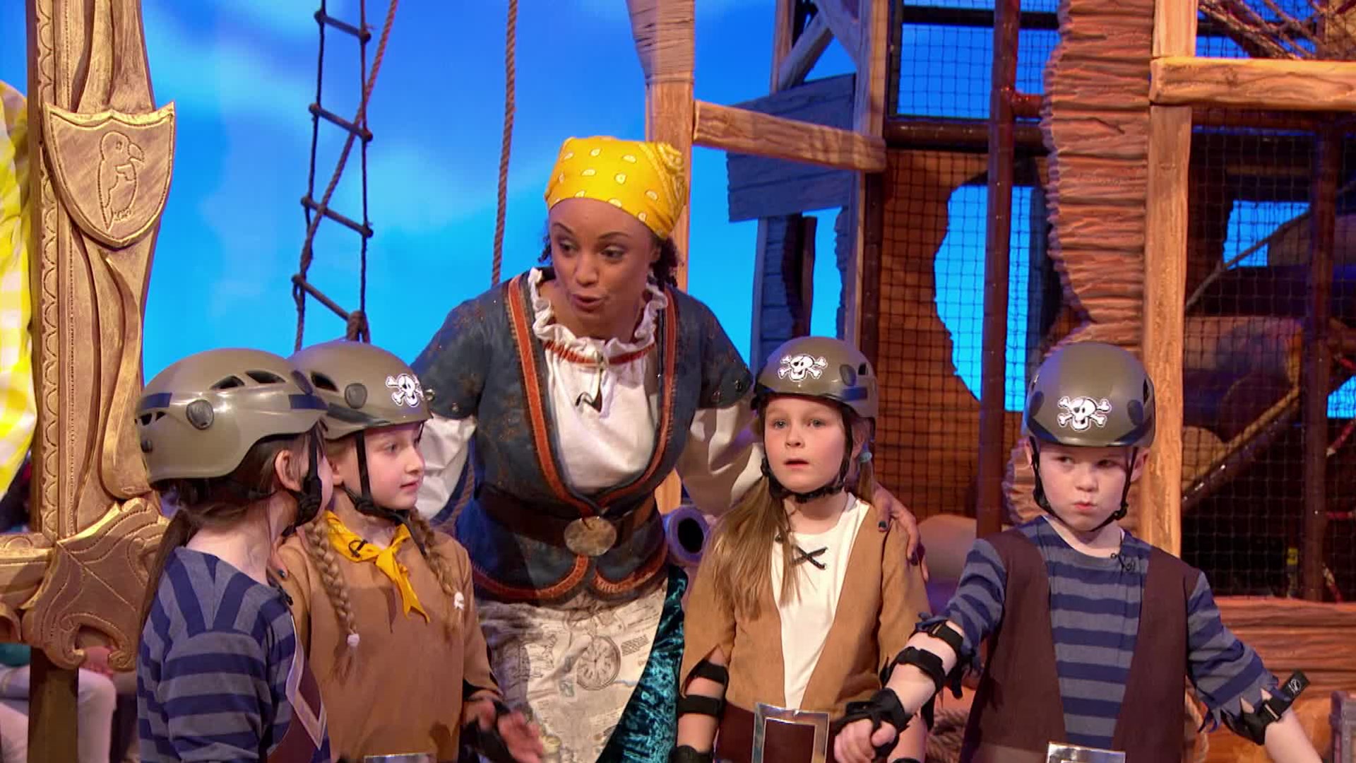 The Swashbucklers are a team of 5-7yr old pirates who undertake a number of physical team games, guided by Gem, to win the jewels - with the naughty Pirates trying to put them off.