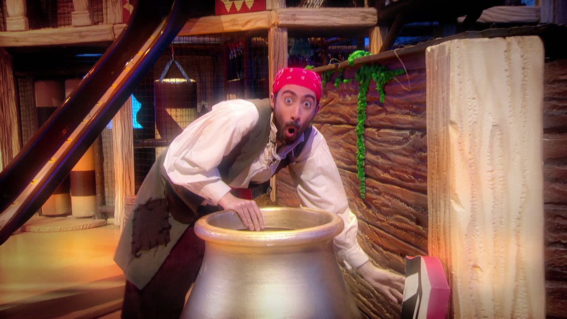 The naughty pirates, Cook and Line, try their hands at being magicians.