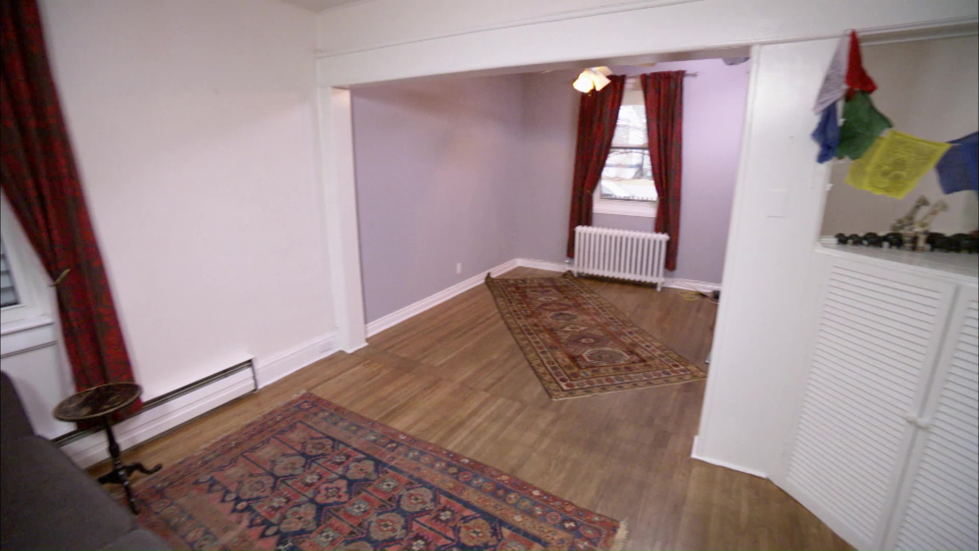 George and John have a modest yet charming house that until a few months ago was the head quarters for John’s successful mascot company. Both want to capitalize on the space but that is where all agreement ends. Candice acts as designer and peacemaker when she transforms their unused living and dining room into a comfortable and welcoming space that both boys can love.