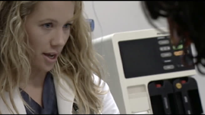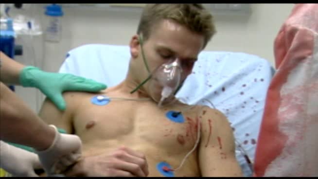 Un paciente bebe agua, se desmaya. Una chica punk llega desesperada con su novio malherido. Accidente de coche de un adolescente.
