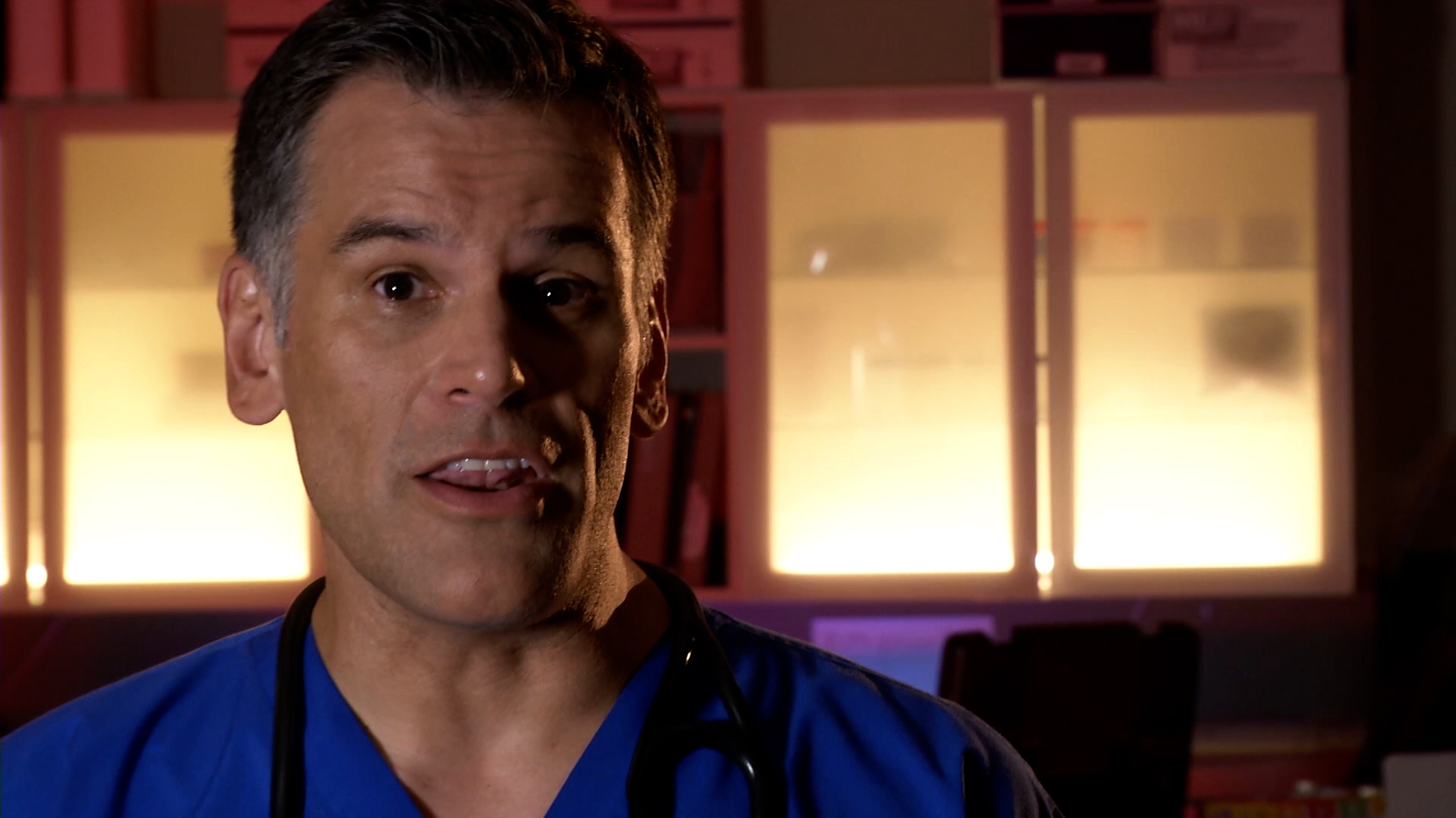 Un médico de urgencias está tratando de resolver por qué un estudiante tiene dificultad para respirar y qué podrían estar ocultando sus hermanos de fraternidad; un hombre se cae de un techo y es atravesado por una pala; un policía sufre un infarto que pone en peligro al personal del hospital.