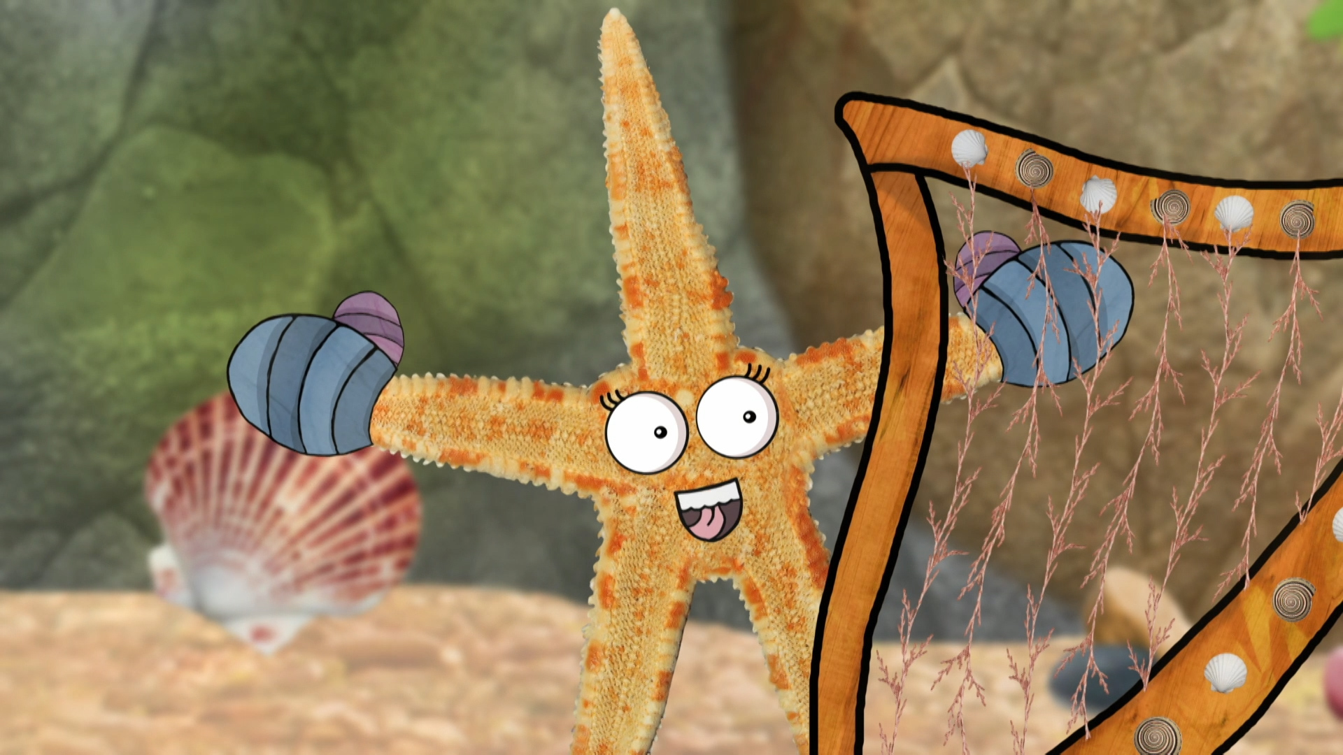 Sheena la gamba está tratando de tomar una siesta, pero no puede dormir. Sally, la estrella de mar, cree que algo de música ayudará.