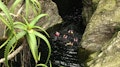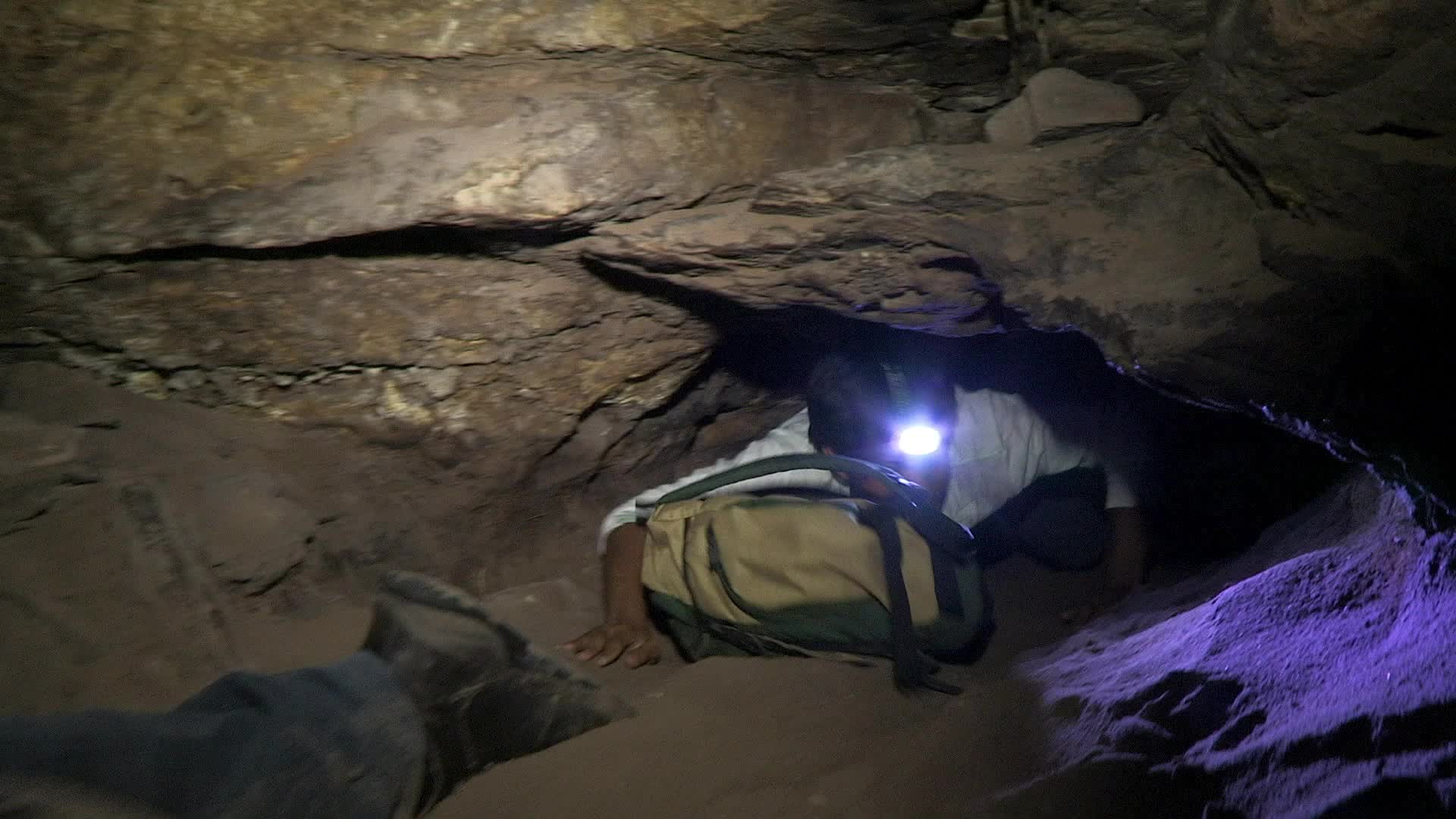 Los niños exploran los animales y plantas en la mesa del parque nacional de la montaña, al comienzo del viaje entran a una cueva donde son testigos de murciélagos.