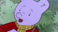 Cuando Rupert y Puerquín encuentran lo que parecen ser pasteles morados en el bosque, Puerquín ignora las advertencias de Rupert y se los come.
