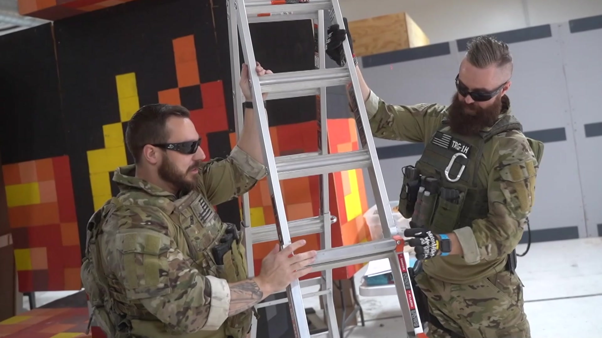 Preston faces off against a cop as they compete through 100 layers of donuts.