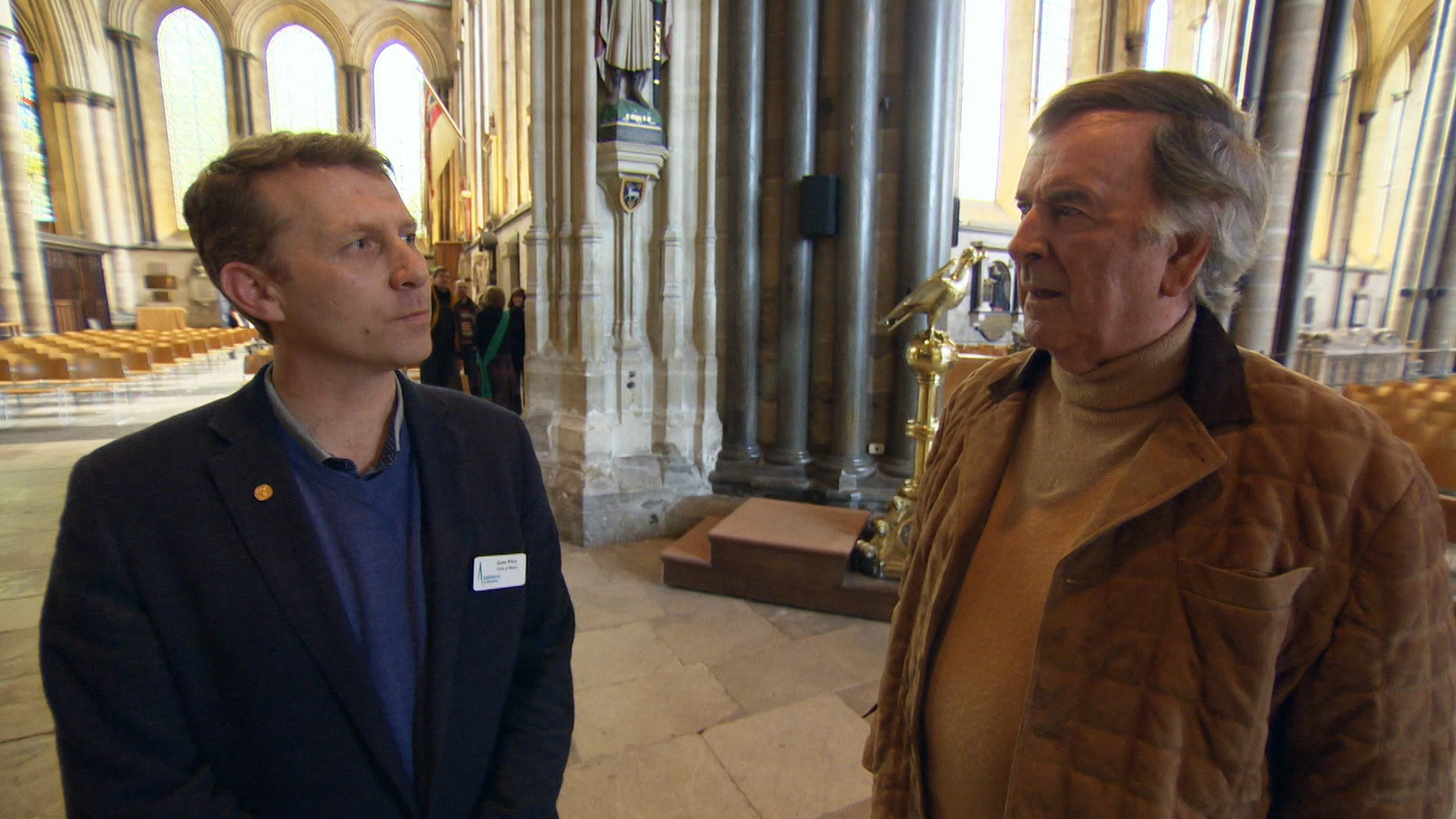 Terry and Mason taste lardy cakes in the historic 13th-century marketplace of Salisbury.