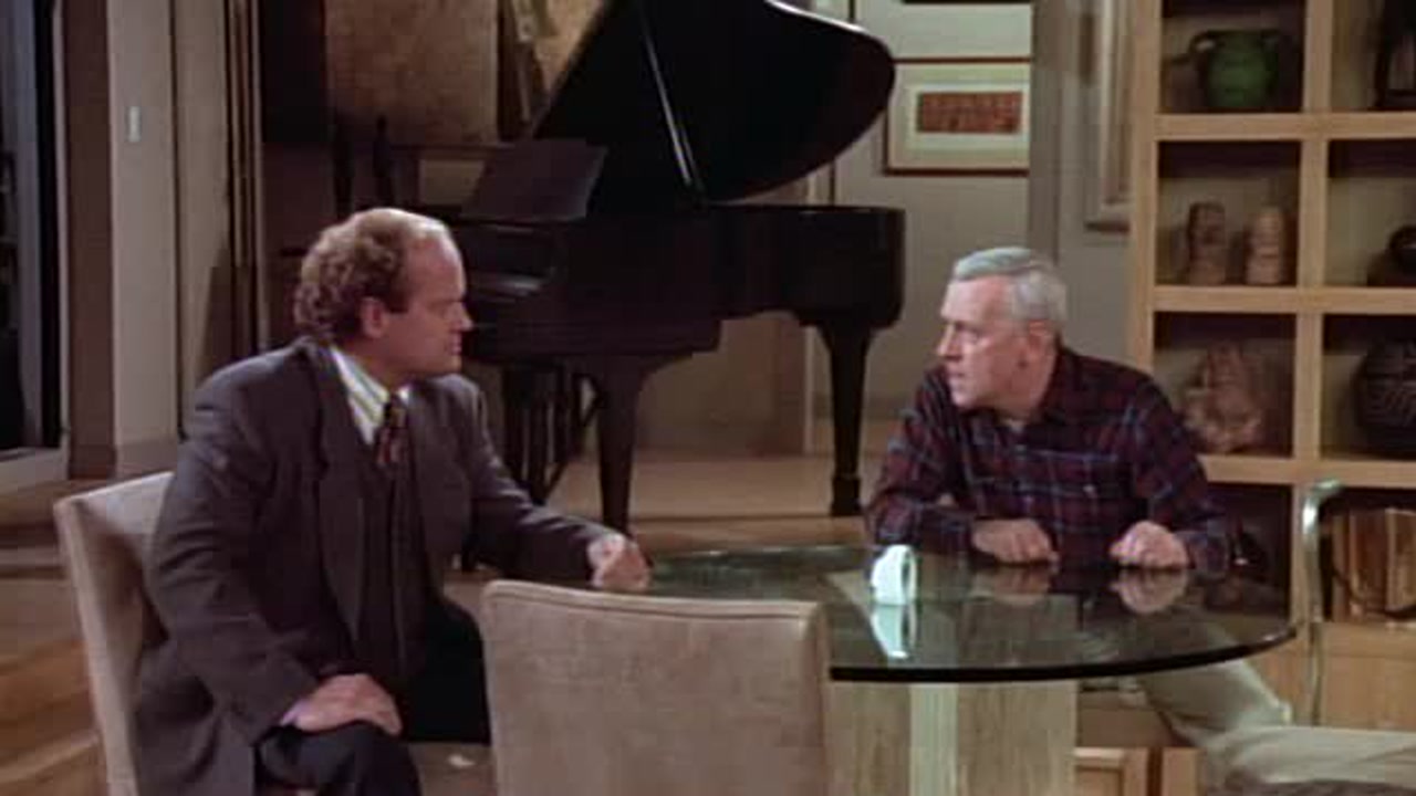 Fed up with a lack of privacy at home and at work, Frasier decides it's time for his father to move out.