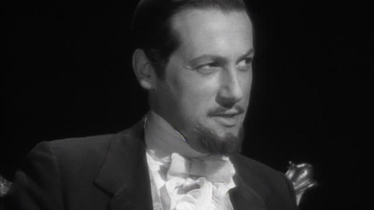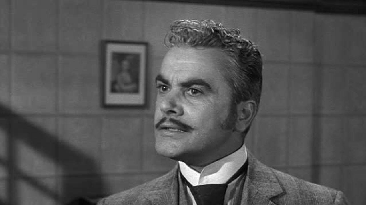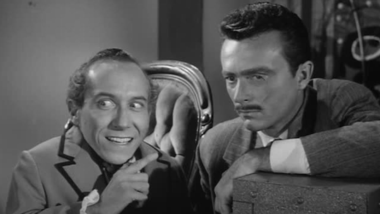 Dr. Loveless, a dwarf, watches his giant assistant, Voltaire, subdue a dock guardas he (Loveless) pre-pares to kill disembarking Prof. Neilsen, arriving to present his formula for a new explosive to the U.S.government.