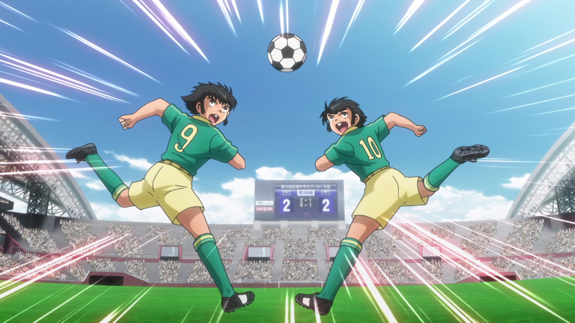 Nankatsu SC and Hanawa SS’s match takes shape with Tsubasa facing off against the Tachibana Twins, who’re ready to take him down.