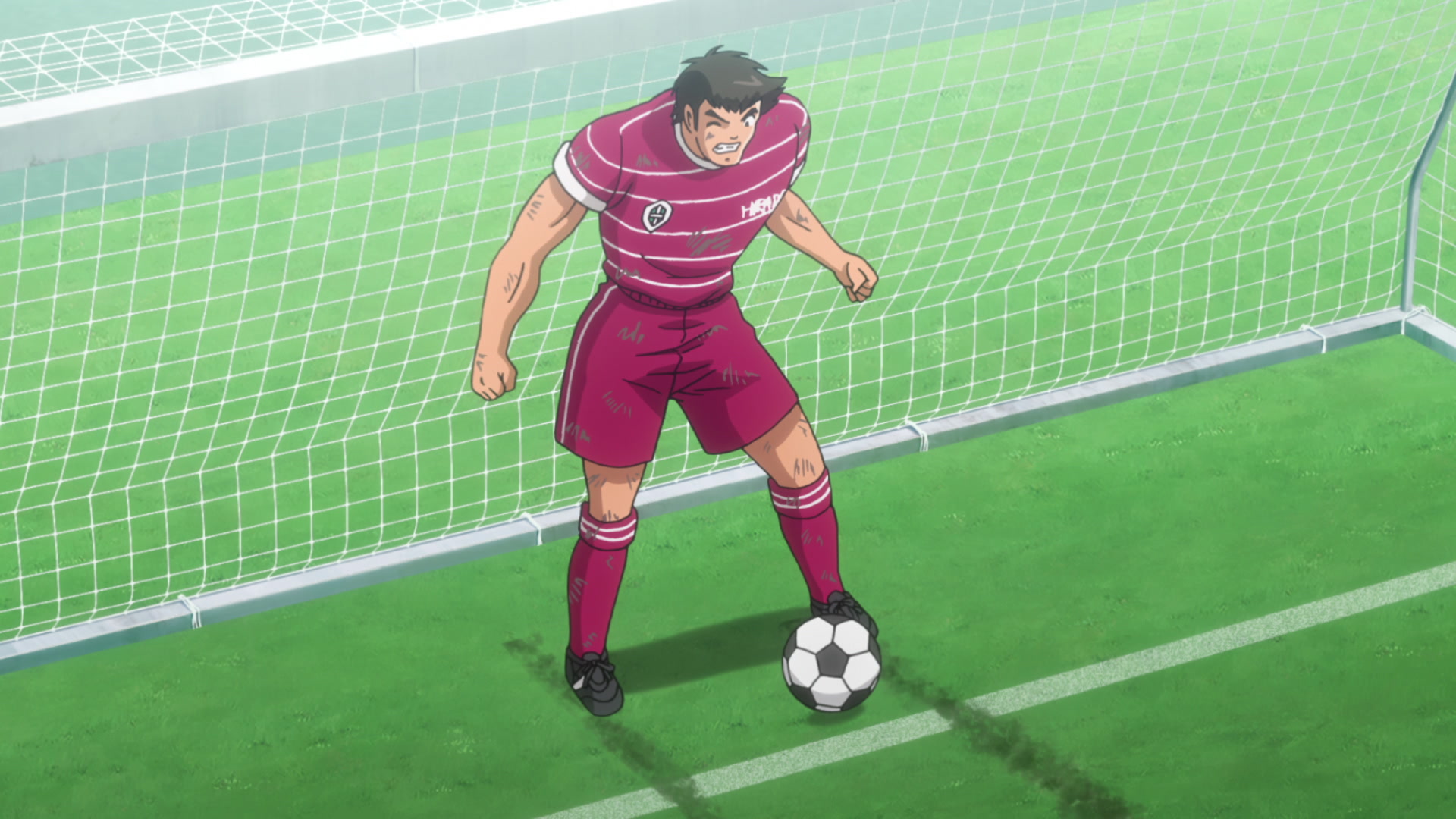 In the second half, Furano ties the match. Injured, Tsubasa attempts his signature shot, and Matsuyama will do anything to prevent it.