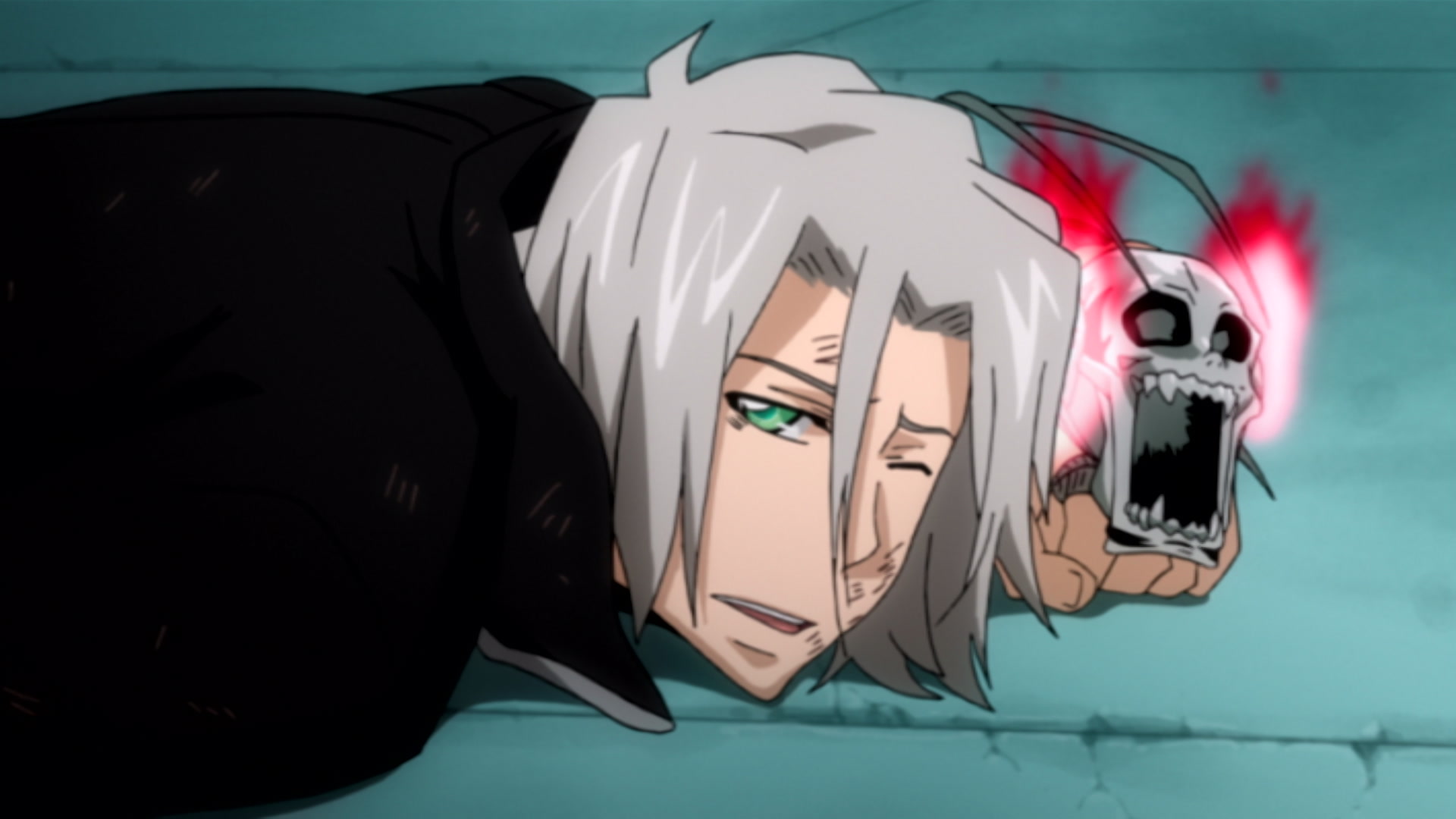 A box weapon leaps out of Kangaroo's pouch. It is Uri! The grown up Uri blocks the injured Gokudera and charges at the black fox.